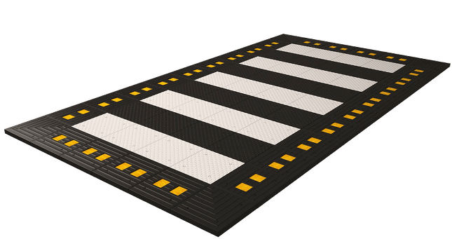 "Приподнятый пешеходный переход" данная искусственная дорожная неровность помимо преимуществ таких как антискользящий протектор для пешеходов произведен из светоотражающего материала.